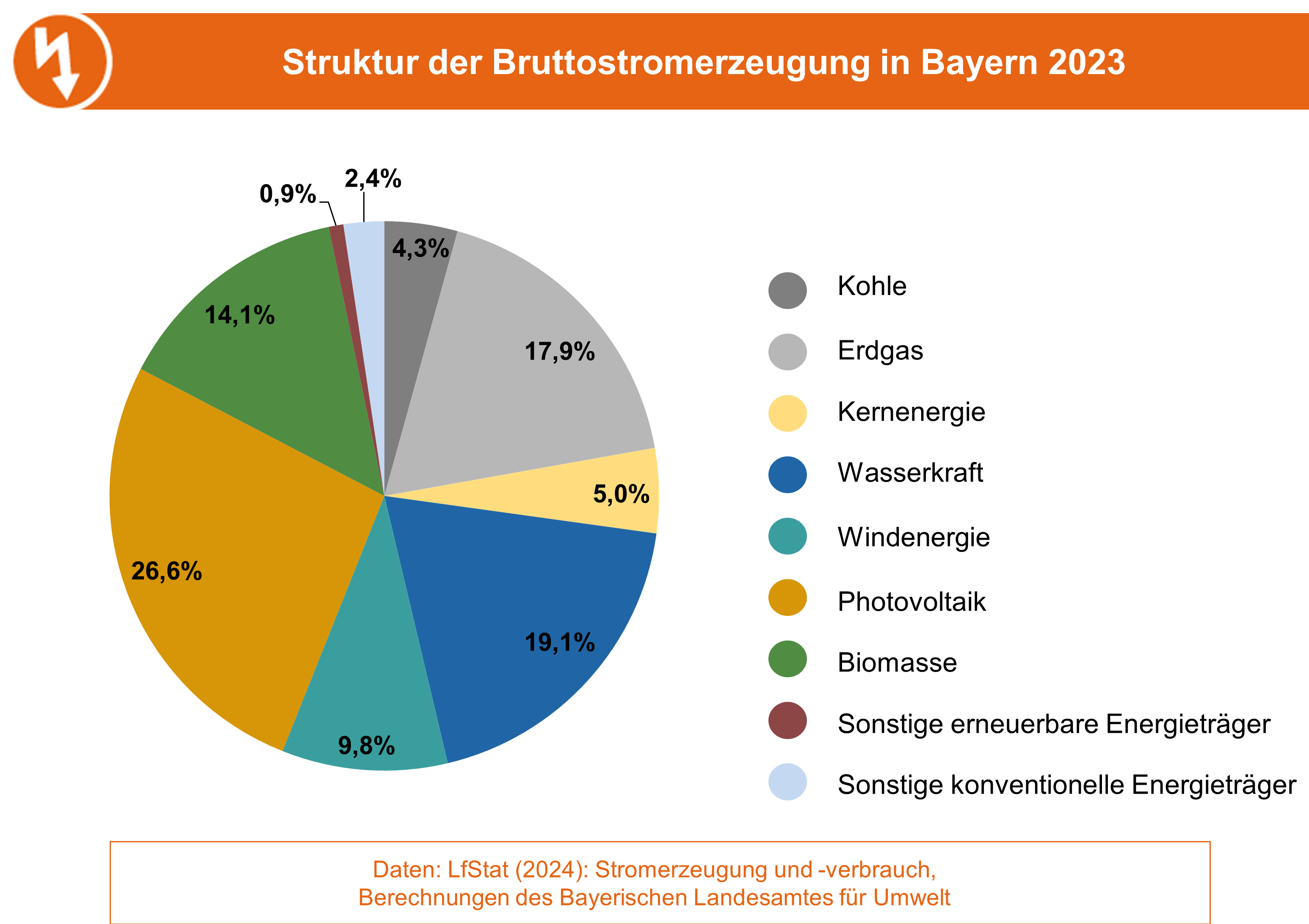 - Bei den hier genannten Daten handelt es sich um die Bruttostromerzeugung, die vom Bayerischen Landesamt für Statistik (LfStat) erhoben und jährlich veröffentlicht wird.